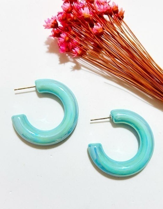 Argola Lisa Grossa Futacor Neon Azul Claro
